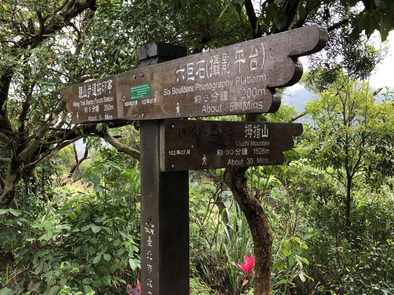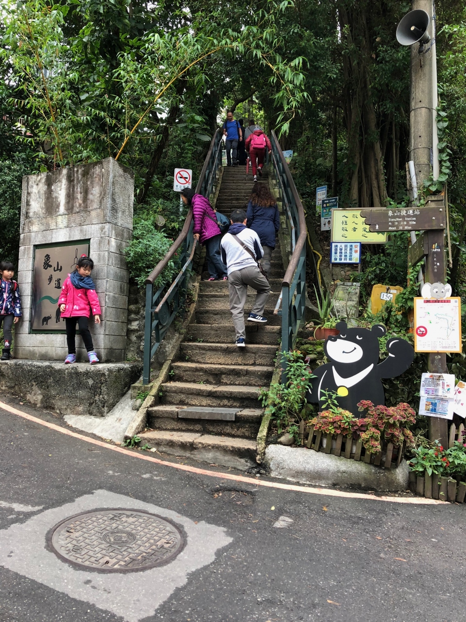 象山站から象山公園内をのんびり歩き象山自然歩道入口まで約700m(徒歩約10分)で到着します。象山自然歩道入口では地元の方々が多く記念撮影をしています。ところどころきつい所はありますが自然歩道自体はとても綺麗に整備されており歩きやすいです。普通のスニーカーで行けますし子供連れで来ている方も多いです。私は松友福徳宮で下におりて来ましたが、象山站→象山公園→象山自然歩道入口→象山六巨石景観台→超然亭→永春崗公園→松友福徳宮→象山站のルートでGoogle Mapで見たところ約3kmでした。象山六巨石景観台や超然亭で休憩や景観を楽しみながらのんびり行きましたが2時間位でまわれた感じです。象山自然歩道自体はもっと色々なルートがありますので、それぞれの状況で利用できると思います。