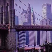 空港から”ブルックリン橋”を車で渡るとニューヨークに来たとわくわくします。渡るとマンハッタン島になります。鋼鉄ワイヤーを使った吊り橋でスティールハープと呼ばれていて、車道と歩道があり、歩道は自転車道も在ります。マンハッタンの夜景が望めて綺麗です。