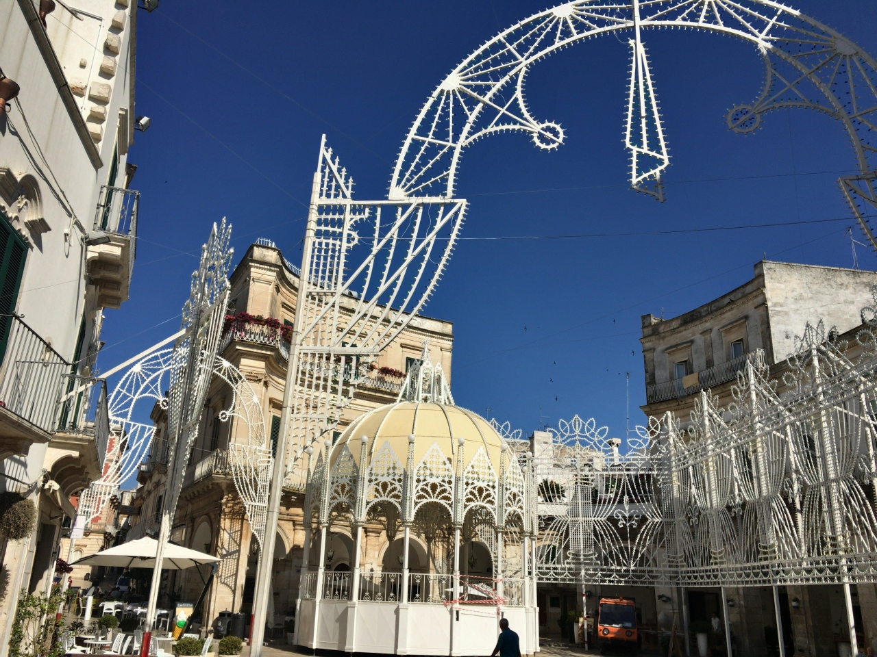 アルベロベッロからレンタカーで訪れました。ちょうどイルミネーション祭りのルミナリエの開催時期のようで、電飾が広場に飾られていましたが、日帰りだったし、夕食もアルベロベッロで予約していたので、見れなくて残念でした。ただプーリア州では同時期にあちこちで開催されていて、後で訪れたマテラで夜のイルミ祭を楽しむことができました。