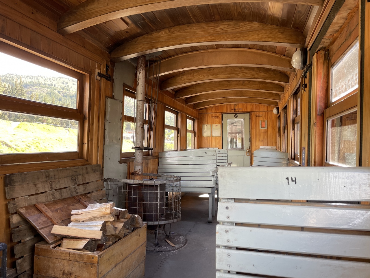 エスケル市内にある駅からからエスケル空港付近のナフエル・パンまでのひと区間の観光列車が週イチで運行されています。オンライン予約ができるのですが、現在はコロナ禍なのかチケットが購入できません。エスケル駅に車両が展示されて、車内に自由に入れます。