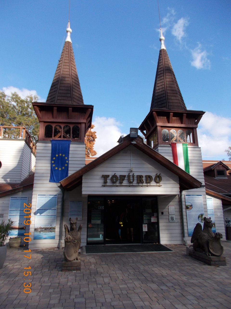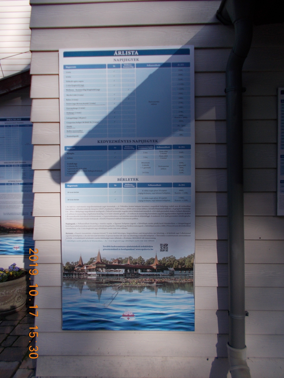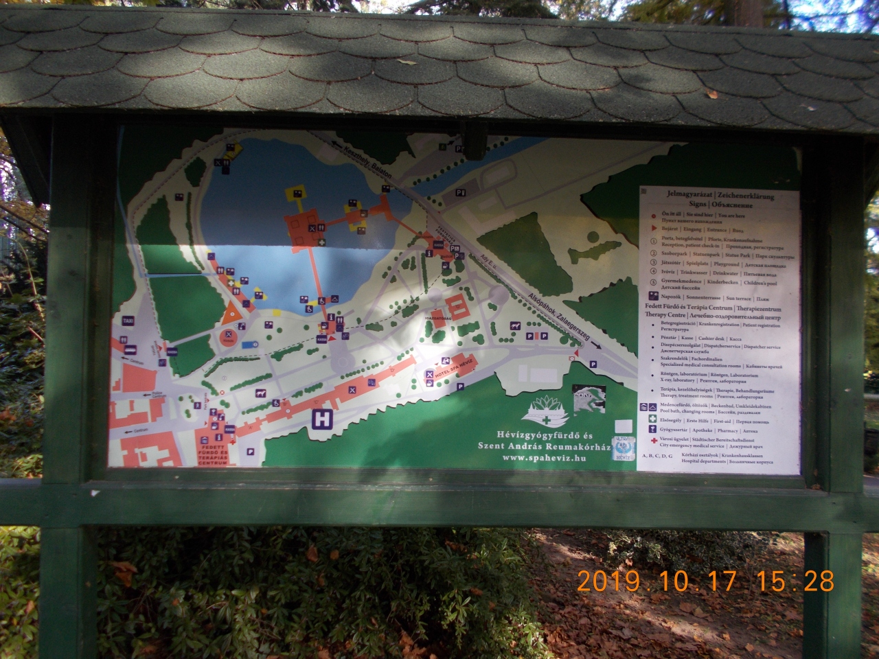 ヘーヴィースの街の中央にある湖がそのまま温泉湖になっている。ホテル街から階段付きの坂を下りるとバスターミナルがあり、その目の前が入り口で、しばらく行くと温泉の入り口のゲートとなっている。数時間の滞在から数日の滞在まで料金もさまざまであった。