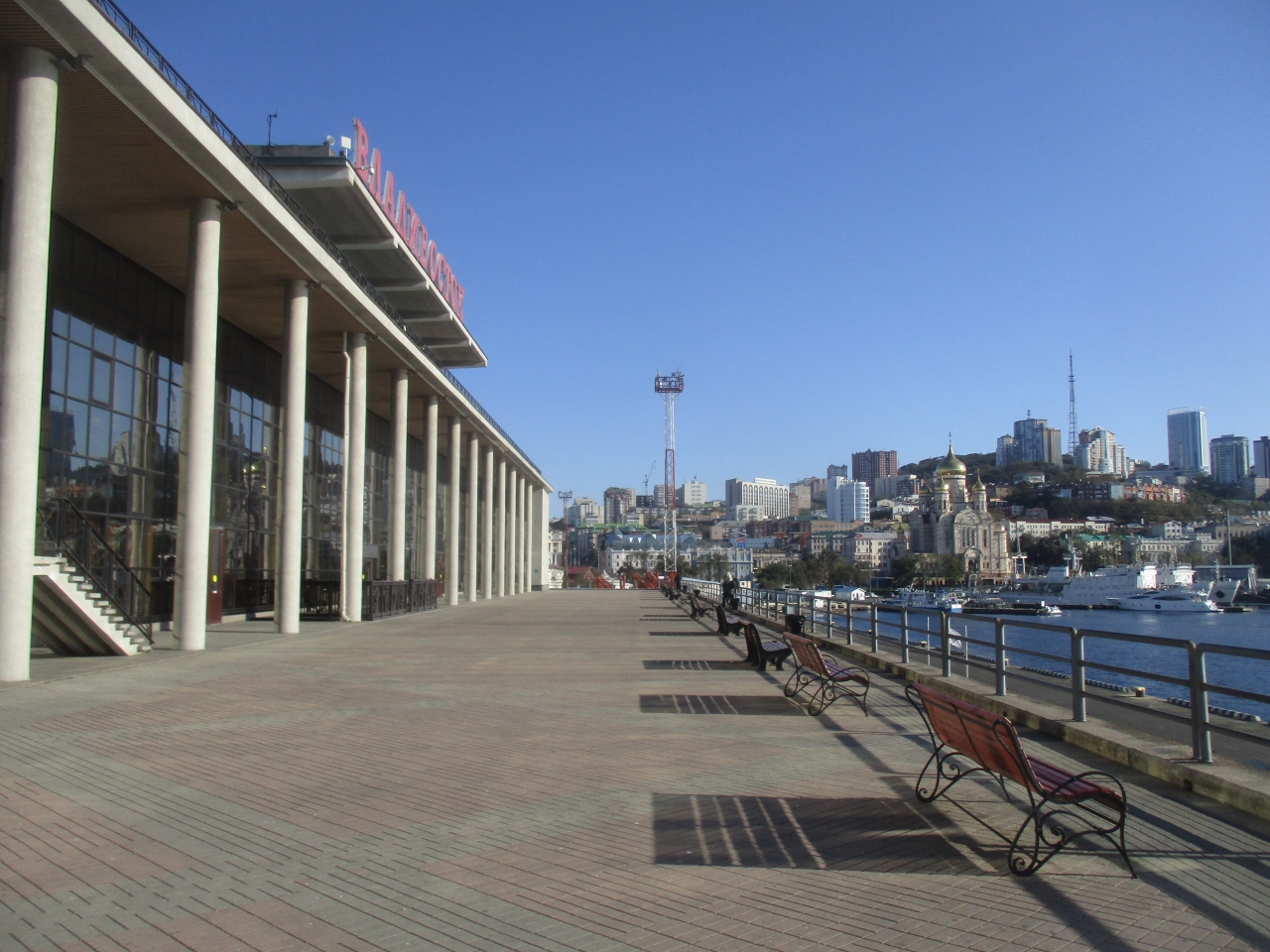 ウラジオストクに寄るクルーズ船の旅があるらしく、そのクルーズ船がウラジオで係留されている様子を見ることができます。また、客船ターミナルの海側の眺めは軍艦が見れたり橋を見れたりします。中に売店やコーヒーショップもあり、船に乗船しなくてもウラジオストックの散策で立ち寄るのは良いかと思います。