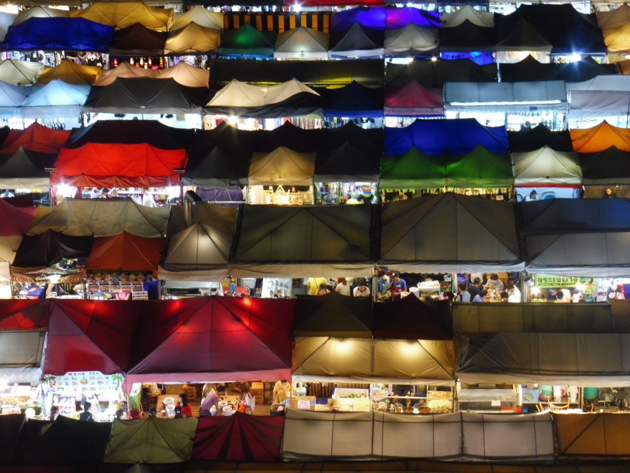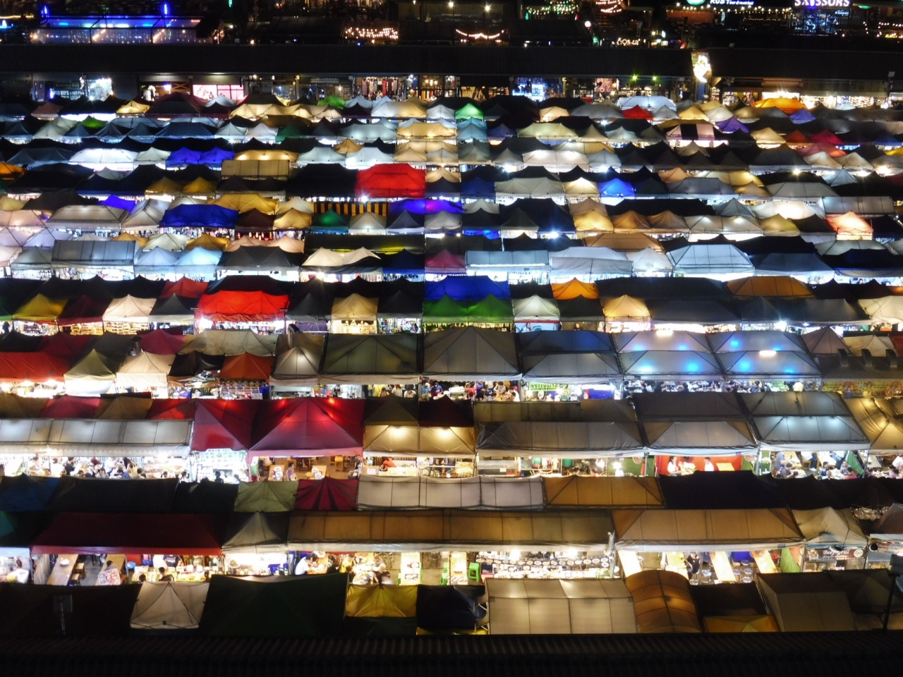 広大な市場は露天エリアと屋台エリアがあり、小さな店が無数に整然と並んでいます。