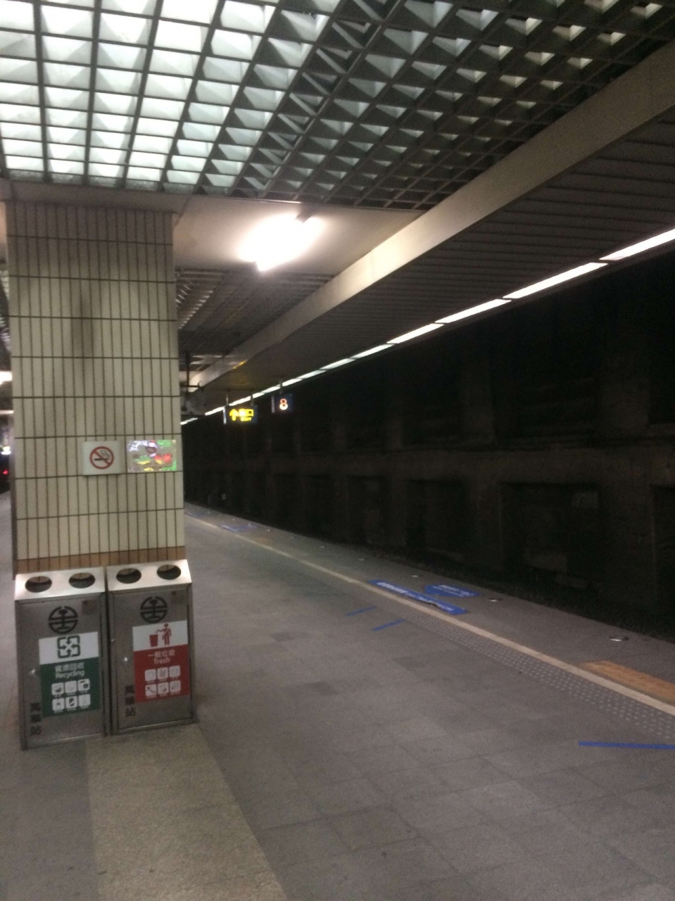 地下にプラットホームがあります。飲料水機は、どちらのプラットフォームにもあります。ちゃんとゴミ箱もありました。改札口の前に椅子が10個くらいありましたが、半分屋外だったので、暑く感じました。コンビニもありました