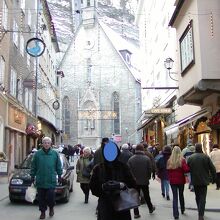 ザルツブルグの旧市街の”ゲトライデ通り”は、ショツプの看板が店の前に吊るされて、何の商店かわかるようになっています。多くの観光客がお土産を買いに来ますし、地ビールの美味しいレストランもあり、いつも、賑わっています。
