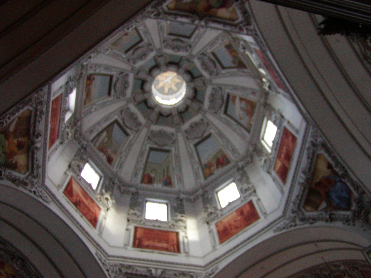 8世紀に創建されてから、焼失や第2次世界大戦の被災を受けましたが、何度かの改築に由って今の姿になったそうで、外観はルネッサンス様式で、内装はローマ風のバロック様式で重厚でした。モーツアルトはここで洗礼をうけたそうです。