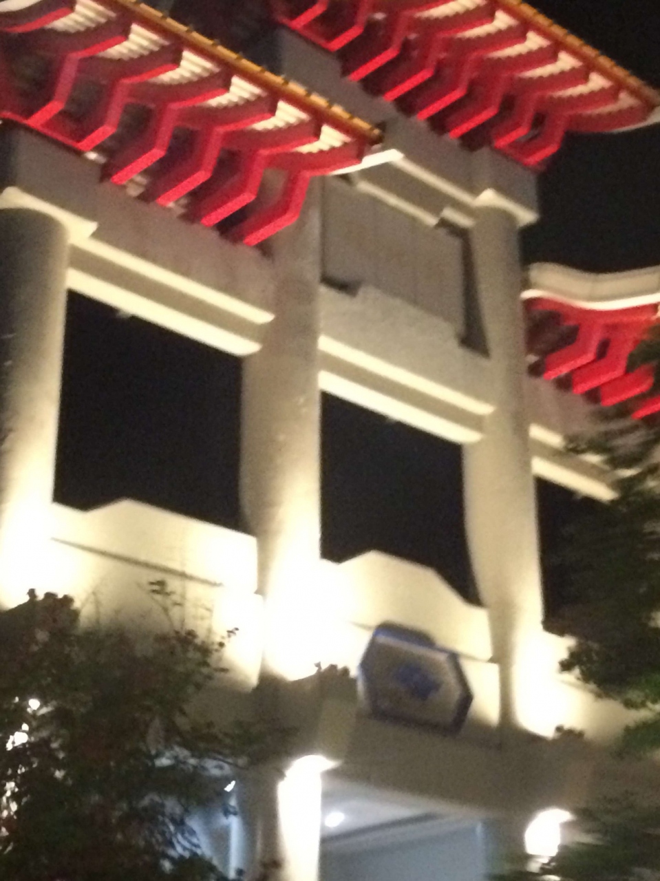 中華でレトロな雰囲気がステキでした。駅前には、イルミネーションも飾られていました。庶民の味方、排骨飯や麺が売っている北投市場まで坂道をおりていって、お昼ごはんをたべました。夜になって戻ったらライトアップしていました