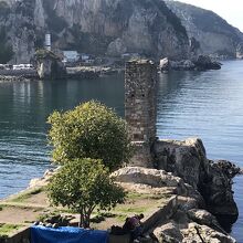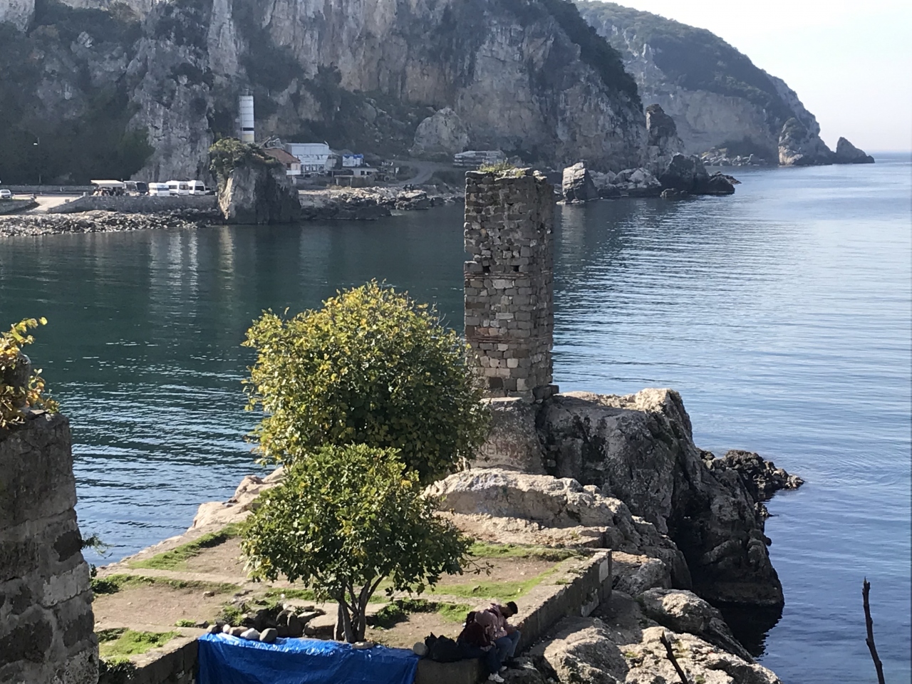 アマスラの見どころのひとつです。アマスラ城の門をくぐって少し先の左側に海辺に降りて行く場所があります。その先にこのDirekli Kayaがあります。ビザンツ帝国時代の海を臨む教会だった場所の名残だそうです。そんなに高くはないですが、一本だけ建っているので目立ちます。Direkli Kayaは垂直に立った岩という意味のようです。