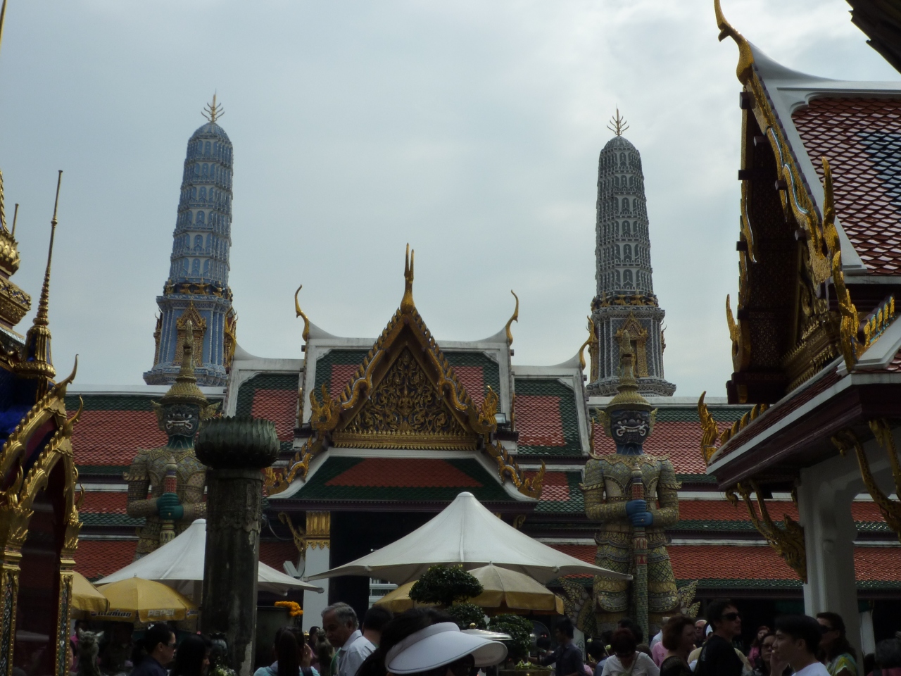堂そのものよりも、堂の入口の両脇に建つ大きなヤックが印象的です。10mはある大きさで、槍のようなものをもって、門番のように見えました。ヤックは、タイへ仏教に取り入れられる際に守護神としての性格が強くなり、門番として善人を悪から守る役目を果たしています。