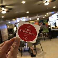 入口は、パンダ・エクスプレスの前あたりで、係の人(セキュリティの人?)が一人一人ワクチン接種完了証明書の確認をしています。確認できたらステッカーをもらえて、次回からはこのステッカーを見せたら中に入れてもらえます。