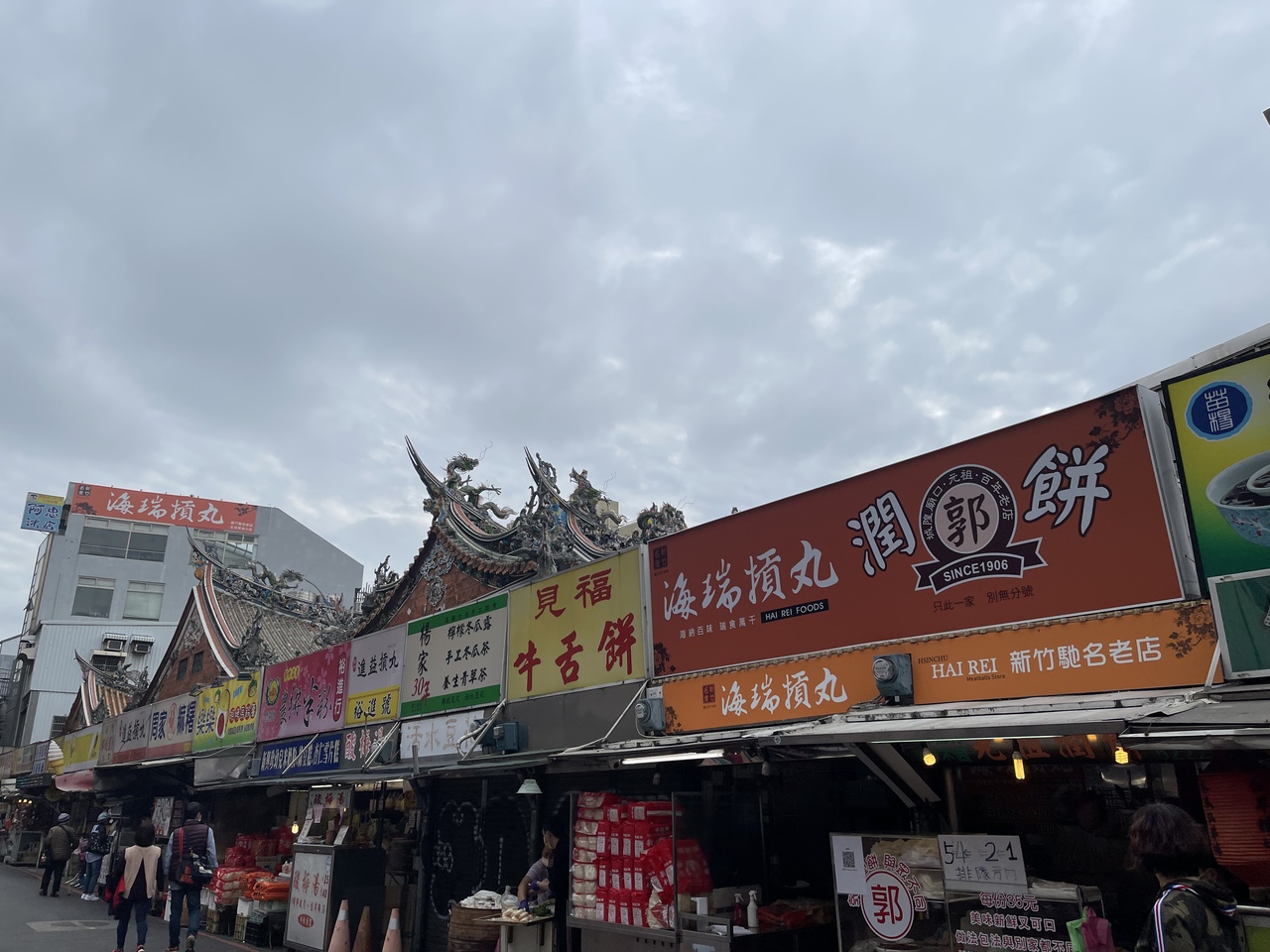 出店もたくさんありました。一部リニューアル中でしたが、お寺の周りは、十分に活気のある夜市でした。アクセスも新竹駅から20分くらいの時間程度なので、天気の良い日に、また出かけて食べに行こうと思っています。
