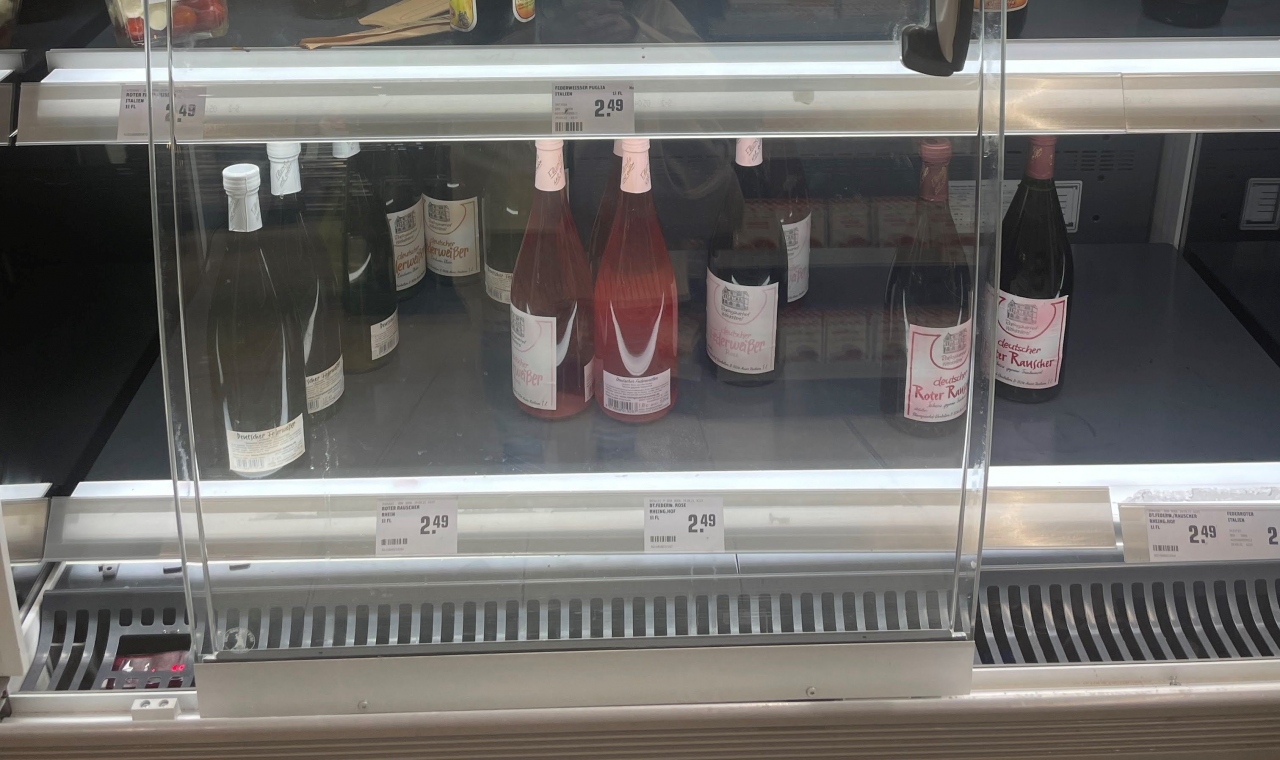 ドイツ人には高い、と言われているREWEですが、キレイで陳列が見やすいので日本人向きのスーパーです。お土産に人気のハリボやリッターチョコももちろんありますが、もし9-10月に訪れたらぜひ発酵途中の甘い微発砲ワイン『Federweißer』(フェーダーヴァイサー)がないか探してみてください。要冷蔵なのでワイン売り場ではなく、要冷蔵のゾーンにあるはずです。スーパーのものは5ユーロ以下で買えます。発酵途中なので蓋に小さく穴があけられているのでお土産には向かないかもしれませんがぜひこの時期しか味わえない幻のワインなのでおすすめします。