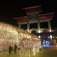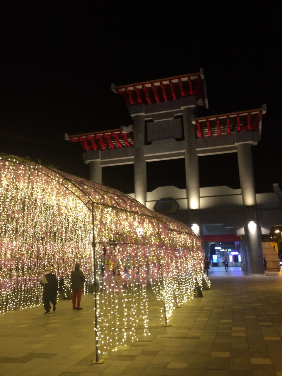 日帰り温泉に行くとしたら、絶対便利なのが、新北投駅でおりて徒歩で行ける温泉に行くというものです。出口の目の前に背の高い見上げるくらいの大きさの中華な門がありました。老舗の温泉高級ホテルも左側に見えました。