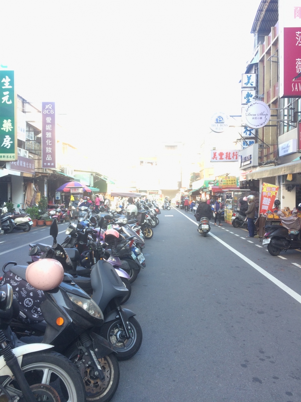 台北駅から自強号に乗って約一時間半で着きました。竹南駅に着くと、ホームから目立って立っている赤銅色の神像が目に入りました。駅の改札を出て観光センターに行った時に、無料でもらった日本語の地図を片手に、周りの市場などを見ました