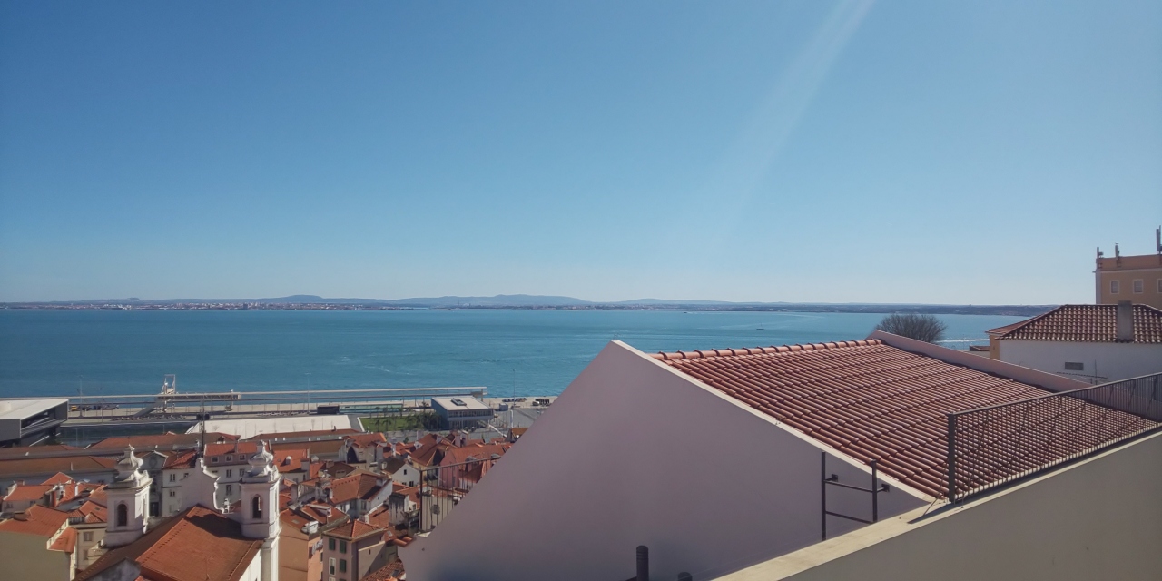 そこからはアルファマ地区とテージョ川を見ることができ、絶景です。赤い屋根の家々が立ち並び、青い空とのコントラストが最高でした。