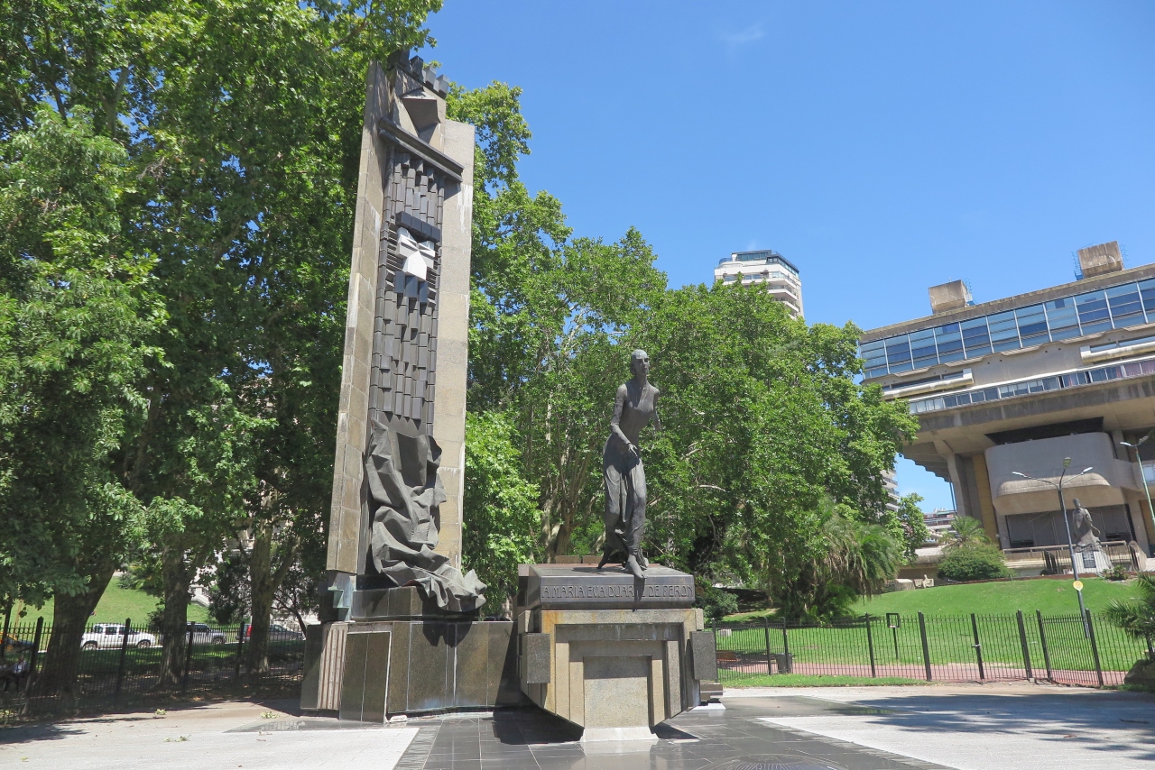 レコレタ地区にあるので、レコレタの墓地や国立美術館を訪れるついでに見ることができます。華奢ですが今まさに駆け出そうとする姿勢で建っています。現在は柵がされていて間近には近づけないので、柵の隙間から写真を撮りました。背後の図書館も見応えのあるデザインです。