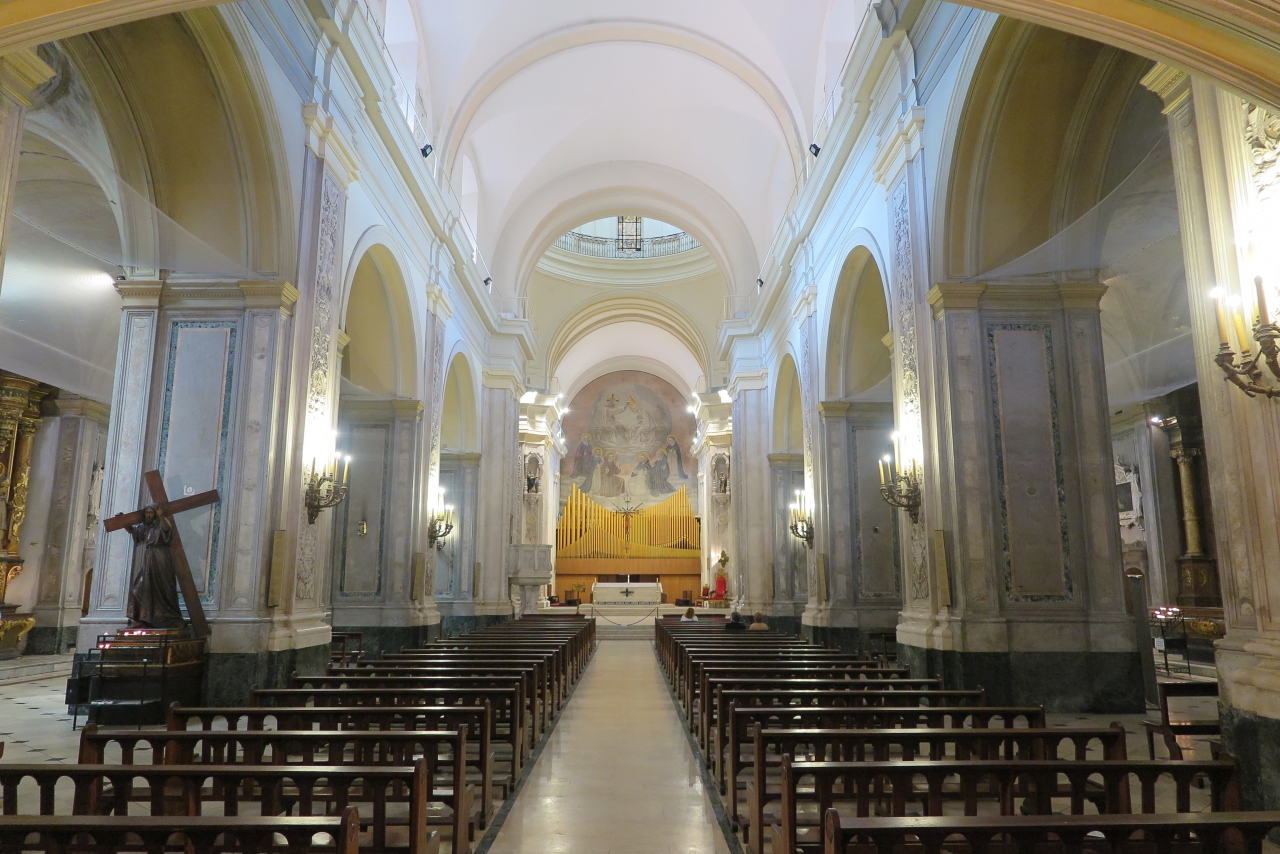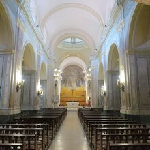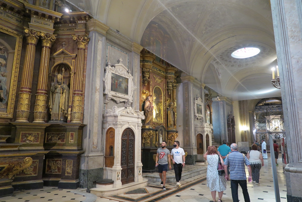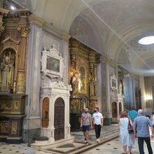 メインの祭壇はシンプルな美しさで、側廊にある祭壇はゴージャスです。日曜のミサに訪れた礼拝者を、白衣を着た神父が優しく応対していました。場所柄観光客も多く訪れています。