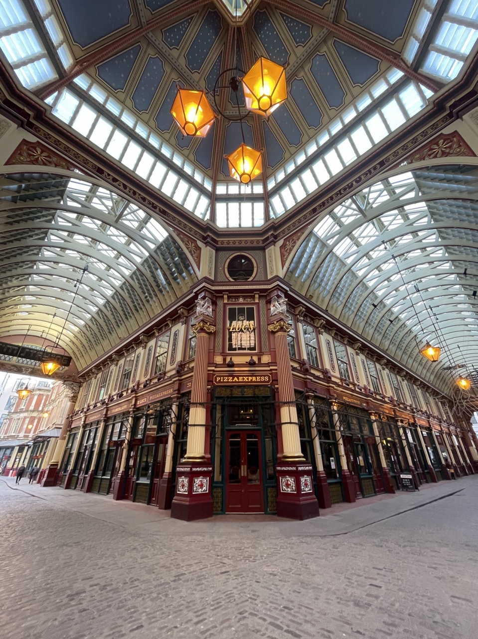 ハリーポッターの賢者の石の舞台になったことでも良く知られるレドンホールマーケット。歴史のある商店街で、アーケードの造りと色合いがとても素敵でした。2021年3月に訪れた際にはコロナ禍真っ最中だった為、残念ながらお店はどこも閉まっていました。観光客が映らない写真を撮れてレアでした。飲食店やパブ、雑貨屋さんやアパレルなどアーケードの中に入っていましたので、人々が戻って来れば賑やかになるだろうと思いました。ハリーポッターの漏れ鍋のお店も要チェックです。