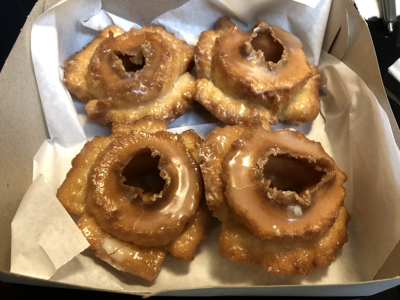 店内はそれほど広くはないけれど、ショーケースにはいろんなドーナッツが並んでいて、中にはベーコンメープルなどもあります。