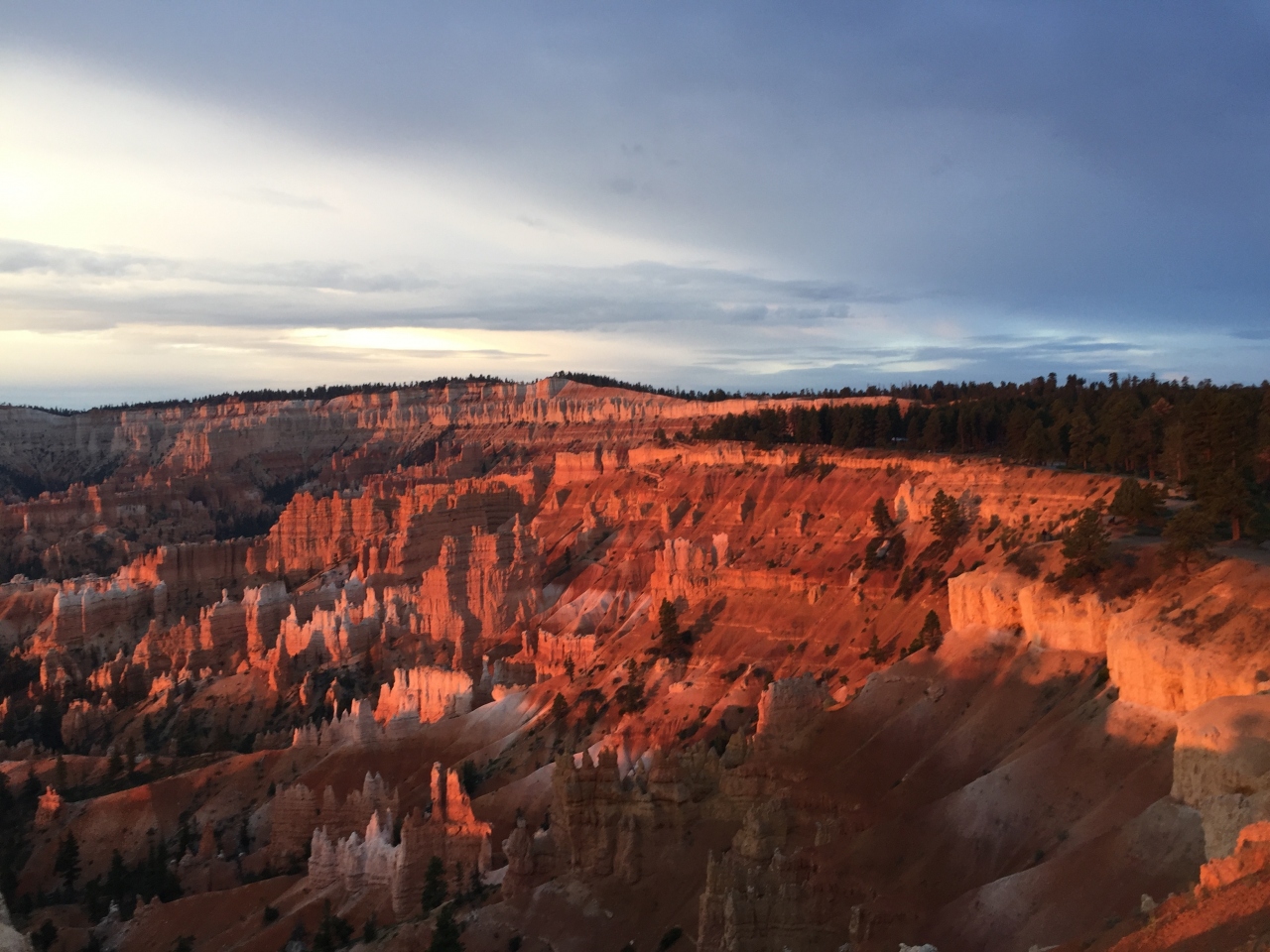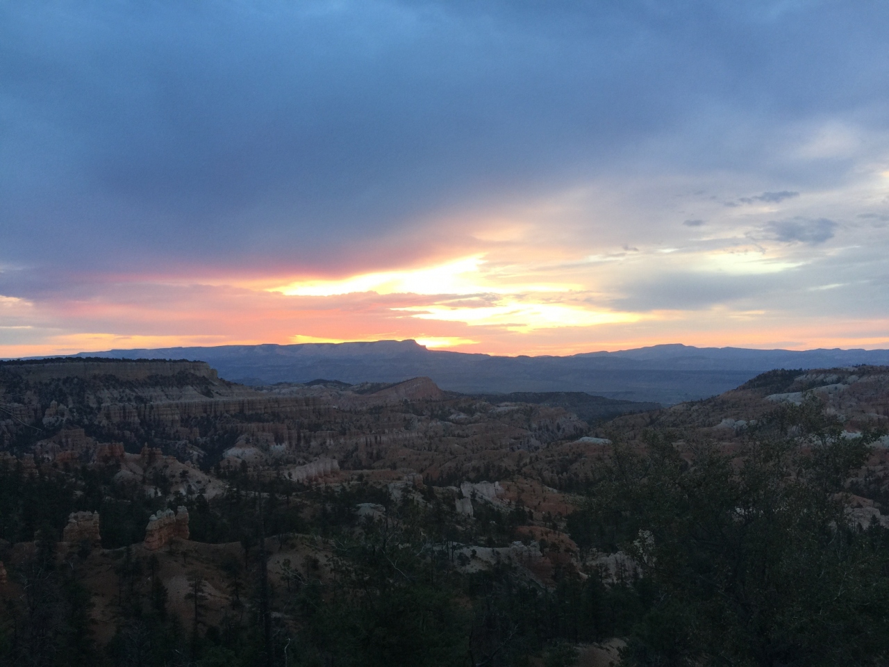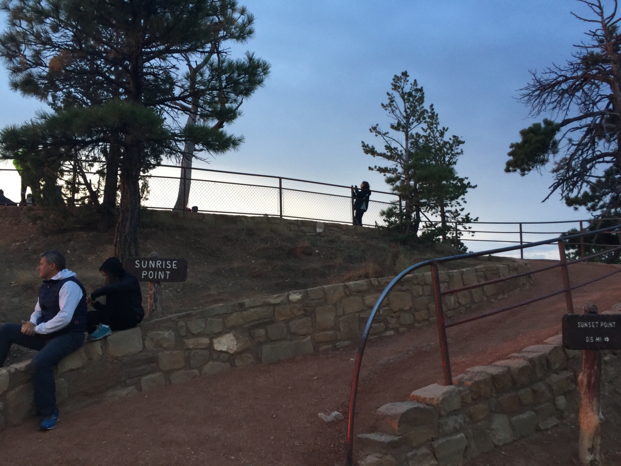 その日の日の出時間の6時51分に間に合うように起床し、数分遅れでサンライズポイントの展望台に到着しました。日の出お見るのに開けた見通しの良いこのポイントは素晴らしいです。ブライスキャニオンに当たるオレンジ色の光線が素敵でした。そしてココから始まるクイーンズガーデントレイルは最高で、一番オススメです。