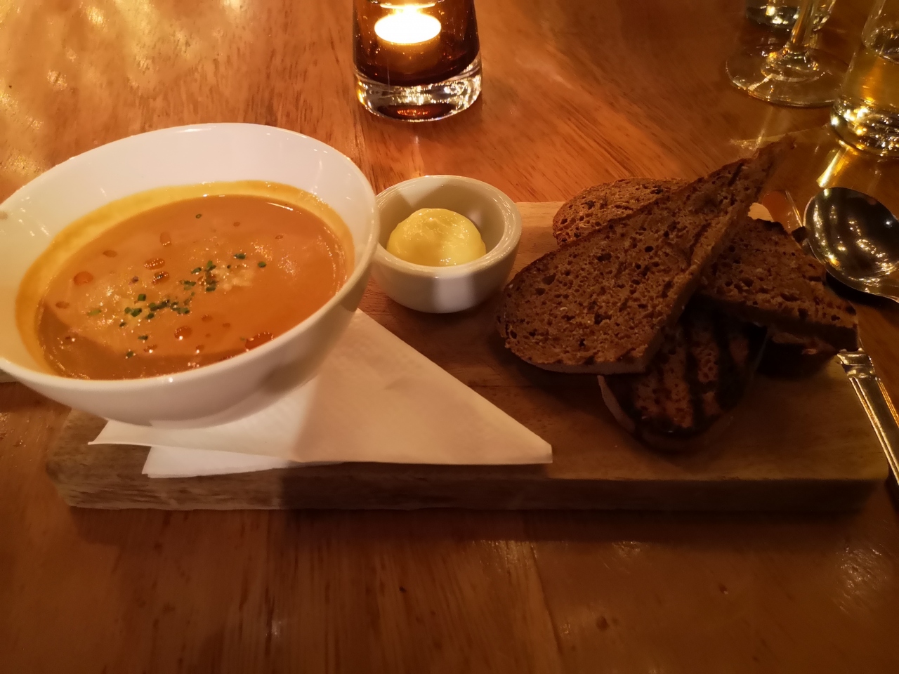 頼んだのは、牡蠣の天婦羅、ビスクスープ、ハギス。どれも大変美味しく洗練されたお味。