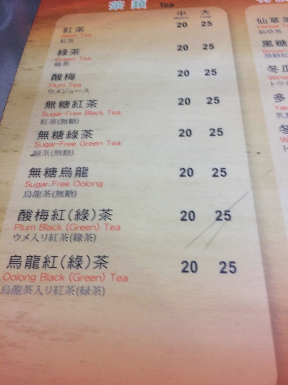 メニューはお店のテーブル?カウンターの所にあります。日本語表記は特にありませんでした。結構気に入って何度も買っていますが、砂糖なしでも十分香りの良い紅茶なので飽きずに買っています。また温泉ついでに寄ると思います