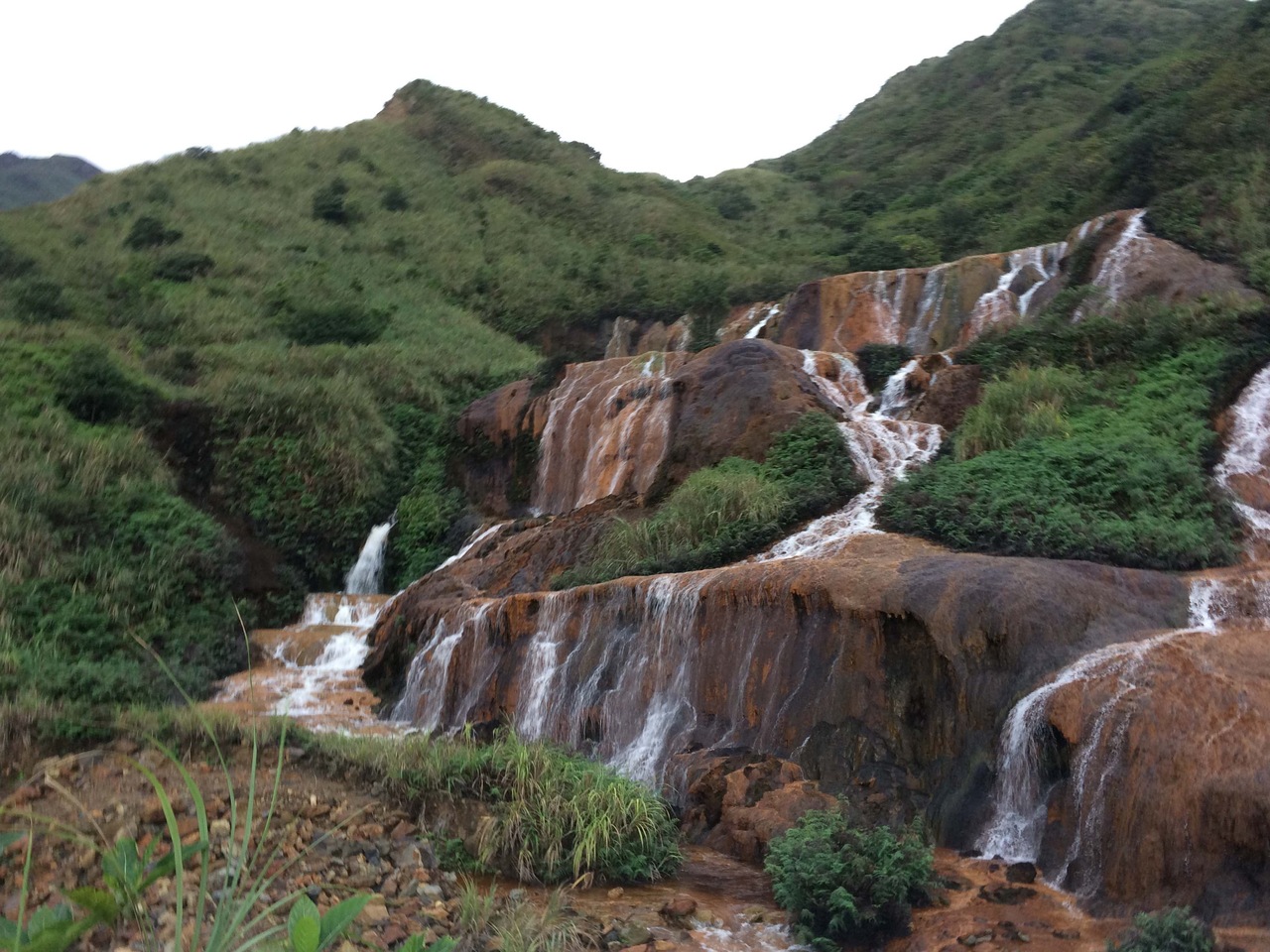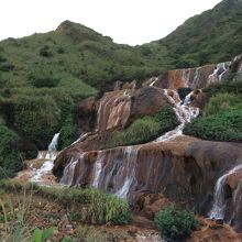 黄金瀑布は、九分までの団体ツアーの途中で寄っていくスポットのようです。バスからおりてくるたくさん観光客がいました。九份までもですが、道が、かなり湾曲してるので酔いがちです。世界遺産申請中と聞いたので、成功してほしい。
