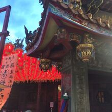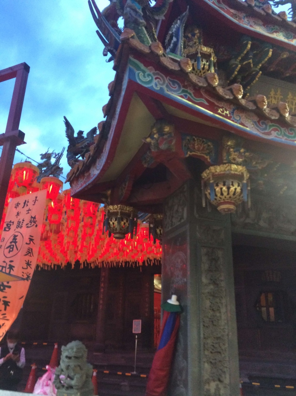 コロナ対策で使用されている実名制になっていて、お寺の中に入る時は、入場制限もあるようで、かなり徹底しています。コロナ前には、たくさんいたお寺の階段に座って食べている人も見かけませんでした。真っ赤なちょうちんです。