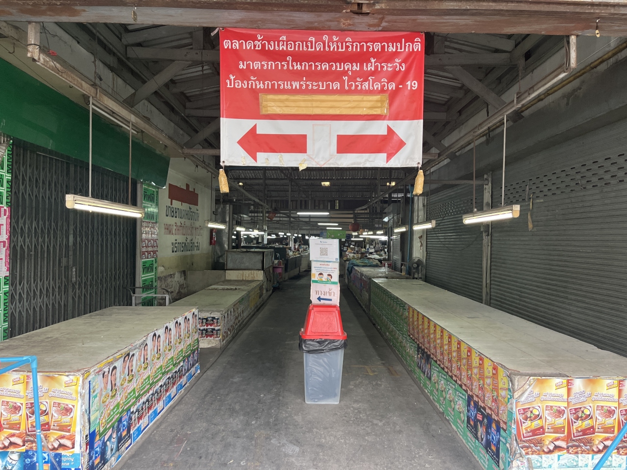 チェンマイの旧市街はほぼ正方形のお堀で囲まれていますが、そのお堀の北の門(チャーンプアック門)の外側にある市場です。コロナ前は時間を問わずそこそこの人出があったかと思いますが、2022年3月訪問時は平日の午前中は少しだけ開いている店もあったものの、午後に通りかかると真っ暗で、閉まっている出入口もありました。週末の朝はより多くのお店が出ているようなので、市場のにぎわいを楽しみたい場合は時間を選んで言ったほうがいいかもしれません。