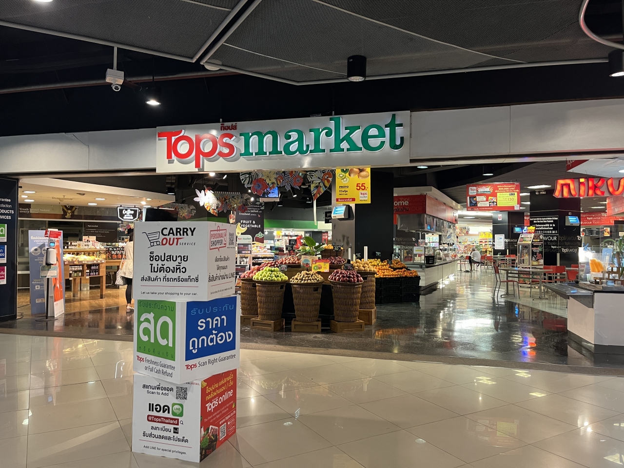 ガートスアンゲオというショッピングセンターの地下にあるスーパーです。外側からも直接入れるようになっていて、食料品の品揃えがよく、タイのお菓子やアルコールもたくさん売られているのでお土産選びにも重宝する場所と言えるかもしれません。