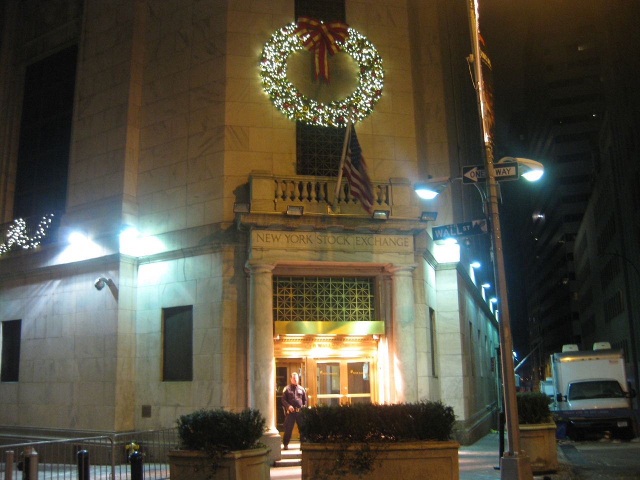 マンハッタン島の南端にあるバッテリーパークから北に500メートルくらいのところにあります。ニューヨーク平均株価(ダウ平均株価)に指定されている企業の株のほとんどはウォール街にあるニューヨーク証券取引所に上場しています。アメリカだけでなく世界の金融の中心地です。