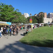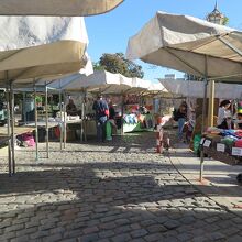 週末に屋台が並ぶ民芸品や雑貨の青空マーケット。レコレタの広場で開催されます