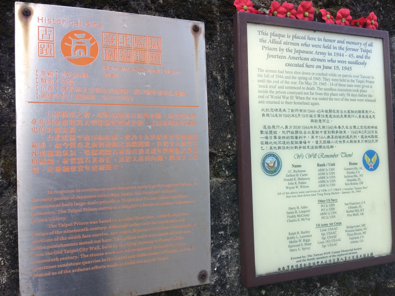 広々としてて風通しがとてもいい公園に接している一部の壁全体をさしています。主人が、これが台北市の指定古蹟だよと言わなければ、何にも気づかずに通り過ぎていました。刑務所の壁が残っていて、歴史も書かれています。