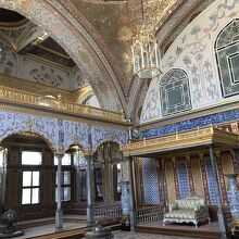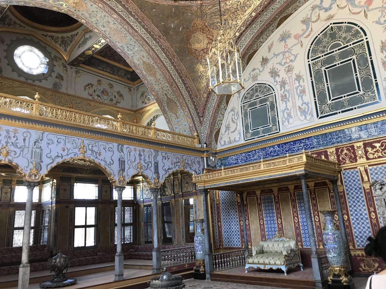 2度目のトプカプ宮殿でしたが前回ハレムに行かなかったので、今回はまずハレムから訪れました。トプカプ宮殿の入場料とは別に入場料を払う必要があります。私はミュージアムカードを持っていたので、それで入ることができました。部屋はたくさんありましたが、重要な部屋はどれも青っぽい色の内装になっていました。ここが噂のハレムかと感心しました。