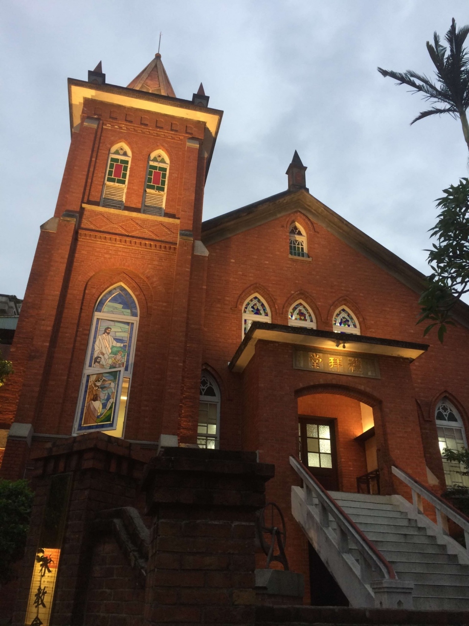 淡水老街よりも坂道を登って行き、高台にあるので景色も悪くなかったです。教会の中はあいてませんでしたが、門は空いていて自由に入れました。学生とカップルたちが見に来て、赤煉瓦の壁を背景におしゃれな写真を撮っていました。