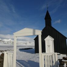 北の真っ白な大地の中にぽつんと立つ、真っ黒な教会。