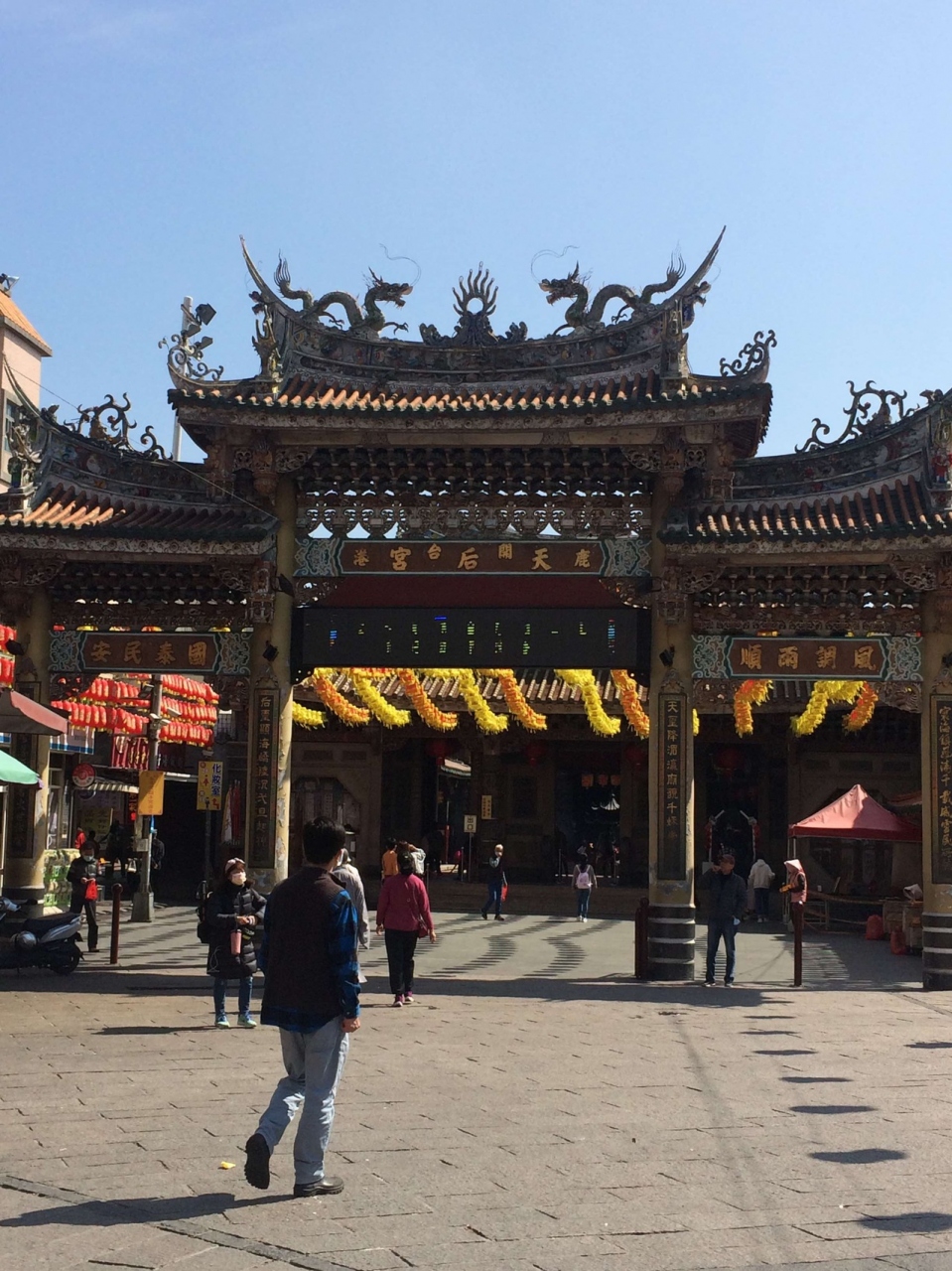 立派なお寺でした。かなり大勢のひとたちが参拝に来ていました。御供物も豪華なものが多かったです。台湾人は信仰心が厚いほうですが、都会を離れて田舎のほうに行くと、その気がさらに強くなっています。敷地も広く、周りはおいしいお店ばかりでした