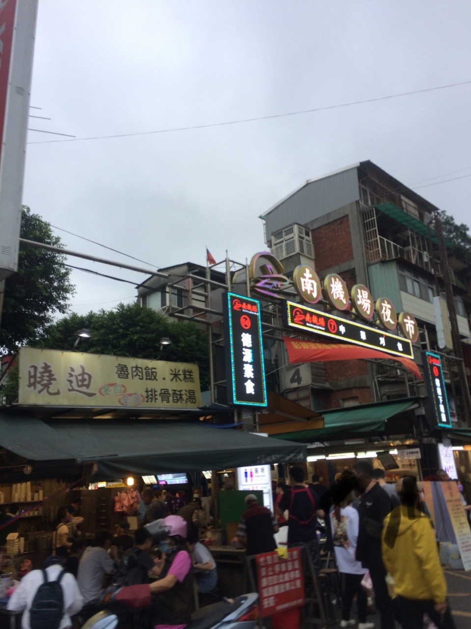 コロナの感染者が増えても、相変わらずにぎわっている夜市でした。むしろ、旅行に行けない地元の人が多かったように思いました。ドリンクのチェーン店が3件ありました。南機場夜市のあたらしい入口のデザインも捨てたものではありません。