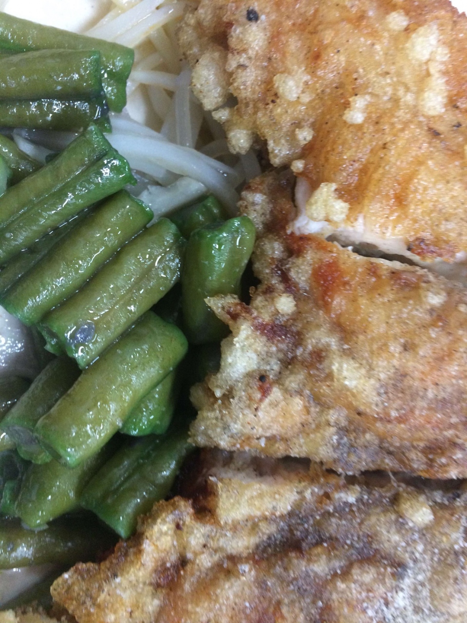 ご飯の代わりに麺にすることもできます。イートインのスペースは十分ありました。イートインにするとワンプレートでおかずが3品と、メインのお肉が乗ってでてきます。スープが飲み放題だったのもよかったです。現金のみでした。