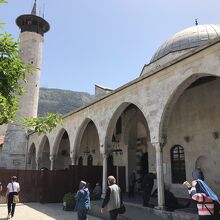 アンタクヤで一番有名なモスクだそうです。市内中心から歩いて5分ぐらいの場所にありました。モスクは旧市街のメインストリートにあり、アクセスしやすい立地でバス停もすぐそばにありました。外観はシンプルですが、敷地内に入ると立派さが分かります。大勢の地元の方がいてお祈りをしていました。
