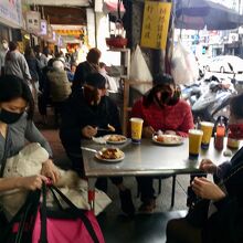 第二市場のまんなかへんにある入り口の右側にあるお店でした。第二市場のお店の中では、かなり人気のお店でテイクアウトもイートインもすごい人でした。おしゃべりが大好きなおじさんが、タロイモのお焼きを勧めてきました。