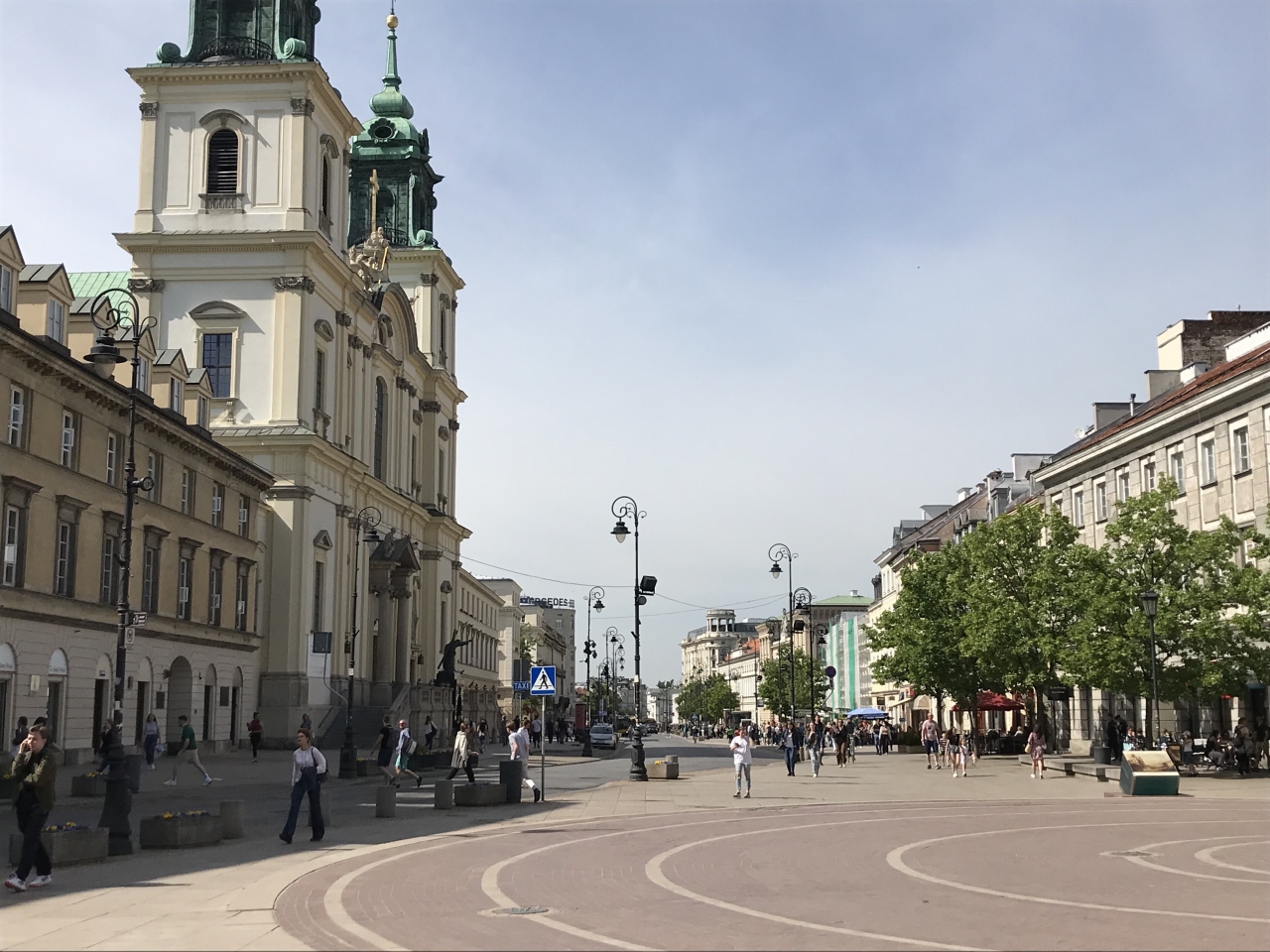 ワルシャワの観光の中心の旧市街にある王宮広場から南に延びる通りです。バスもたくさん走っていますが、王宮広場からコペルニクスの銅像があるスタシッツ宮まで歩いてみました。たくさんのお店もありますが、大統領官邸や聖十字架教会などの見どころもたくさんあるので、バスで遠降りすぎるには勿体無い場所です。