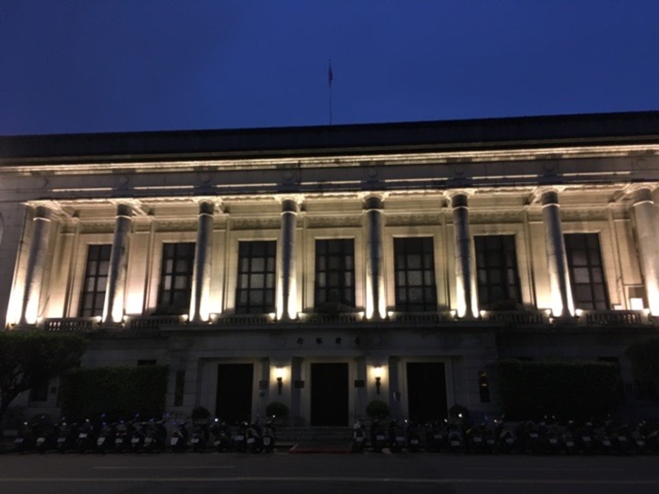 夕方から夜にかけて中華民国総統府や雪王というアイスクリーム屋さんなど台北駅付近を散歩した際に目の前を通りました。夜は銀行としての業務は終わっているのに、ライトアップされていて目を見張りました。おごそかな雰囲気です。