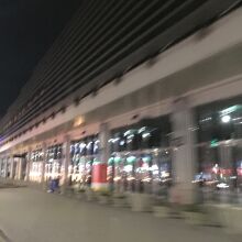 基隆駅から1本で続いている道で、港と海に面しています。エバーグリーン ローレル ホテルなどの大型ホテルもありました。歩いている人よりもバイクや車のほうが多い大通りでした。夜は、木々もライトアップに使われていました