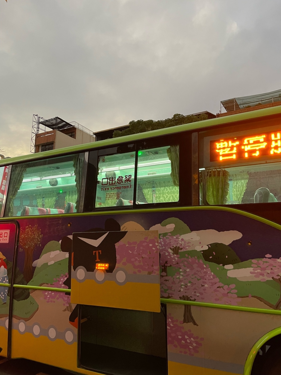 台北市内とは、また違う景色なので窓からの景色を見て過ごしました。駅と駅の間隔も広かったです。本数の割には、乗りたい人のほうが多くて、バスに乗りきれない人がいました。バスを待つ時間がもったいなかったです。