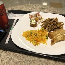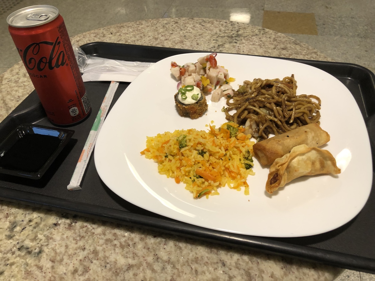 フードコートの計り売りの日本食、Sushi wayを利用。焼きそば、春巻き、チャーハンに加えて、コーラをオーダー。金額はR$43(1,100円)と高め。計り売りはブラジル料理の方が確実にお得だと思いました。
