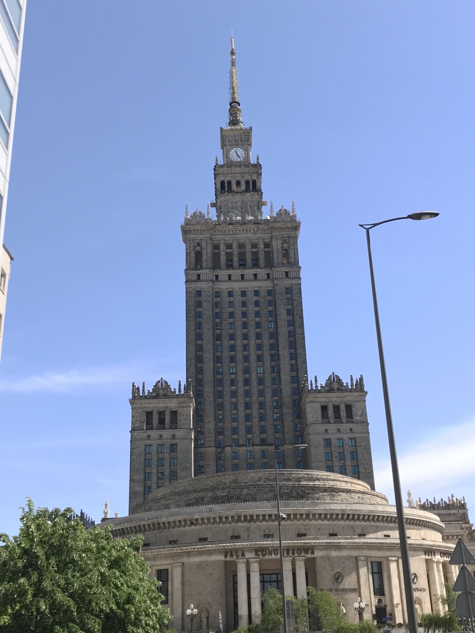 ワルシャワ空港から電車でワルシャワ中央駅に到着し、地上に出て初めて目にした建物がこの文化科学宮殿です。圧倒的な存在感を感じました。ソ連支配の象徴となる建物だそうです。ホテルに荷物を預けた後に行ってみましたが、近くで見るとその古さは隠せません。展望台があるようでしたが。並ぶのが嫌なので登りませんでした。