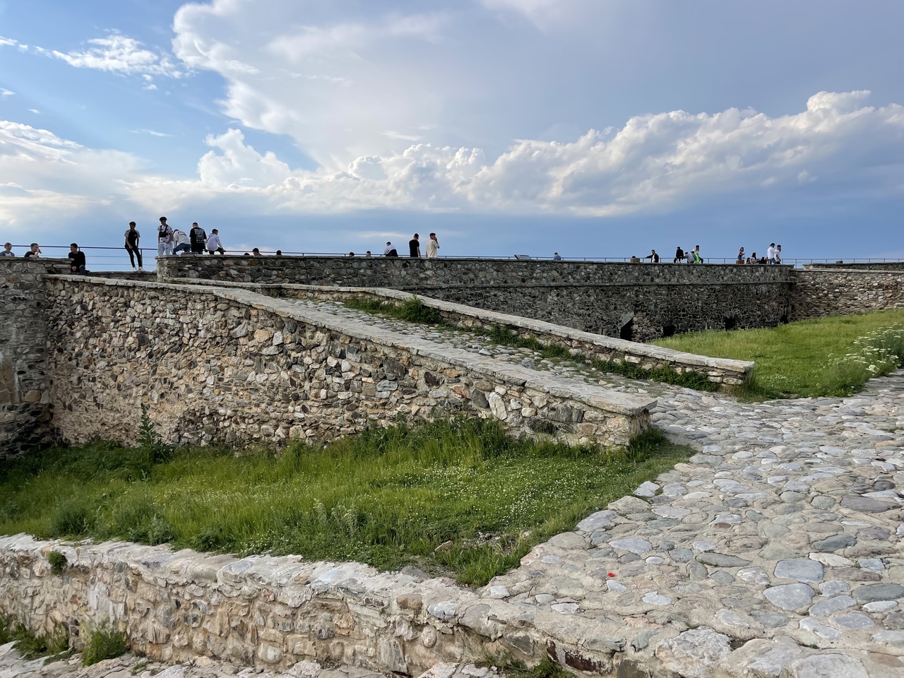 舗装されていない登山道のような道を登り頂上にある城壁。プリズレンの街並みを丸々上から臨むことができる。