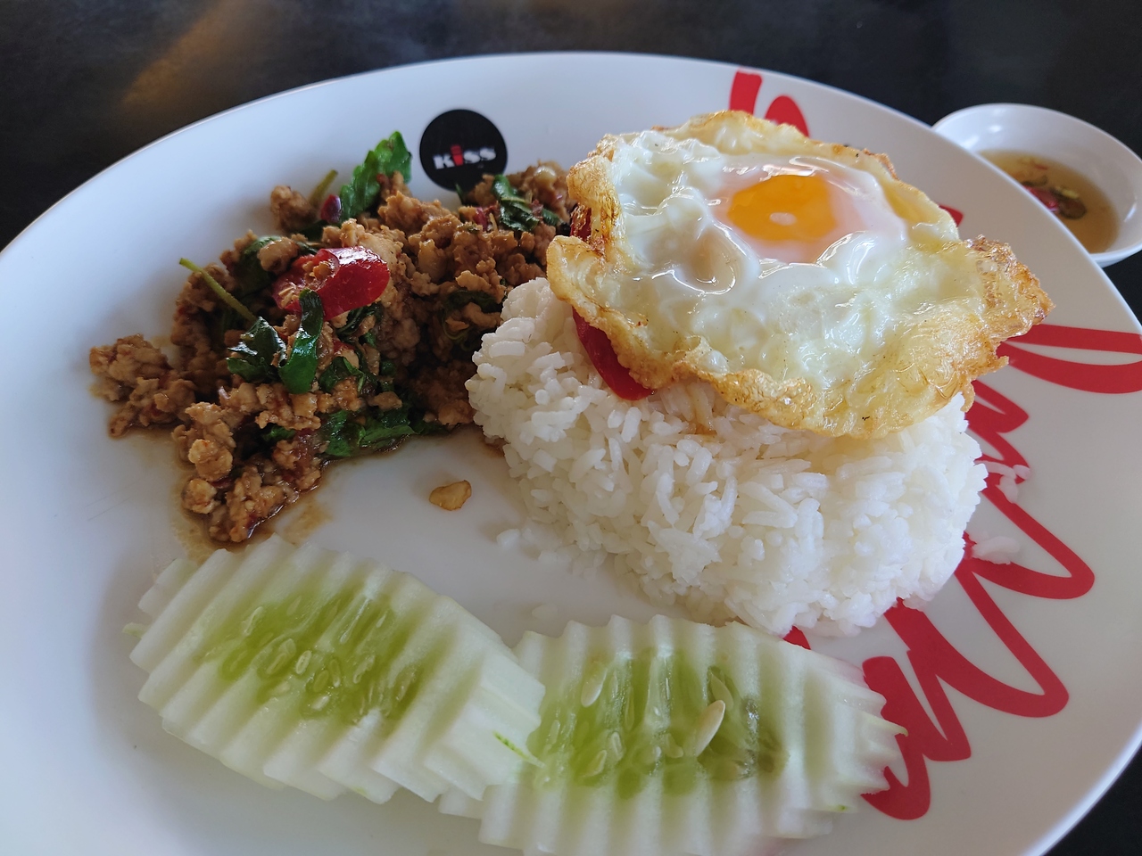 変わったパタヤに驚きっぱなしで歩きすぎて疲れたので、朝からでもオープンしててお客さんも賑わってるキスフードへ。