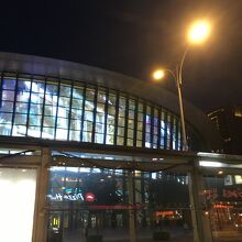 日本の埼玉スーパーアリーナみたいに駅から徒歩で行けて、同じ名前の駅があり、地下鉄駅の目と鼻の先です。交通の便は最高でした。夜でも外観がライトアップされて、広告や映像が流れているので、みていて面白かったです。